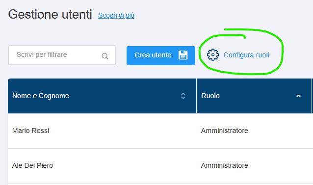 Sì, sull’elenco degli utenti, clicca sul tastino “Configura ruoli” (vedi img sotto)